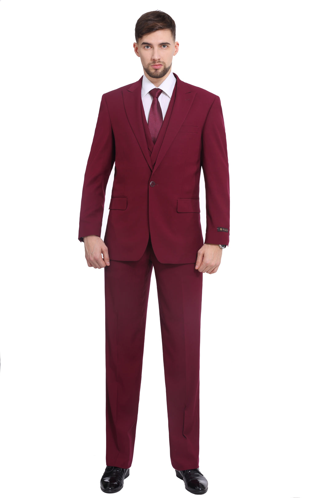 P&L Men's 3 Piece Classic Fit Suit Set, One Button Solid Jacket Vest Pants Office Dress Suit